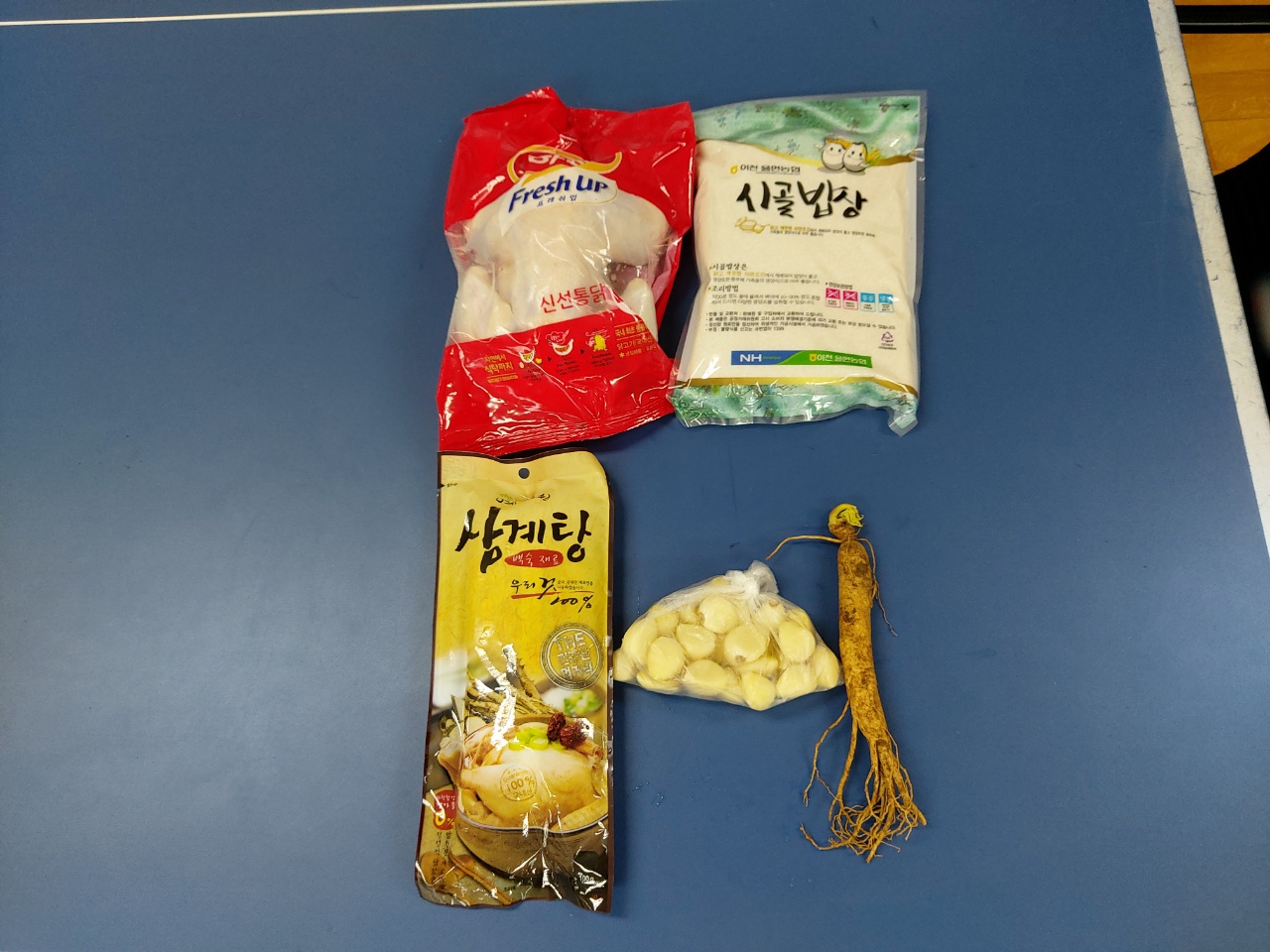 삼계탕 : 생닭,인삼,찹쌀,마늘,한약재